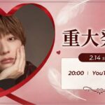 福本大晴:2/14(土) 20:00〜バレンタインに公式YouTubeにて生配信