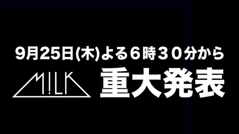 M!LK:9/25日(木)18:30〜19:30 Youtubeにて重大発表生配信