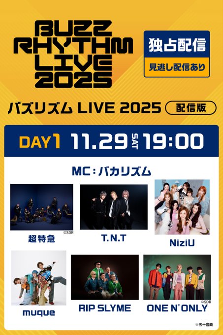 『バズリズム 𝗟𝗜𝗩𝗘 2025』11/29(土)、12/6(土)、12/13(土)19:00~配信編集版の配信が決定