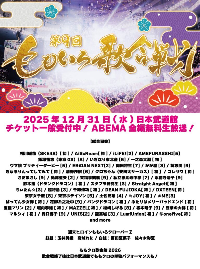 『第9回 ももいろ歌合戦』12/31(水)14:00~ABEMA全編無料生放送