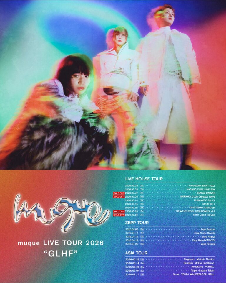 muque:『LIVE TOUR 2026“GLHF”』4/19(日) 18時〜Zepp Haneda公演をU-NEXTにて生配信 ※無料トライアルあり
